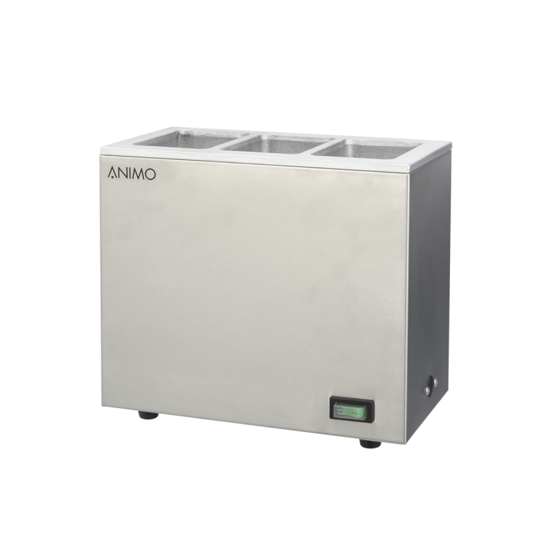 Le chauffe-briques ANIMO MPW 3 est un équipement professionnel conçu pour les laboratoires de transformation agroalimentaire qui souhaitent chauffer proprement et rapidement des briques de lait ou de chocolat sans transvasement. Avec sa capacité de 3 briques, son système de chauffe par bain-marie sec, sa carrosserie inox, ses 3 cavités en fonte d’aluminium, sa puissance de 1100 W, son alimentation en 220-240 V monophasé, sa température de conservation d’environ 85°C et sa pince à brique livrée de série, il répond parfaitement aux besoins des professionnels qui recherchent une solution hygiénique, pratique et simple à intégrer sur un poste de service ou de préparation.