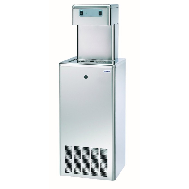 Le refroidissement se fait par banc de glace à détente directe, une technologie reconnue pour tenir la cadence lorsque les remplissages s’enchaînent. La température de sortie annoncée se situe entre +3 et +10°C (selon conditions d’utilisation : température ambiante et température d’arrivée d’eau). Le système est associé à un refroidissement ventilé pour maintenir la performance.