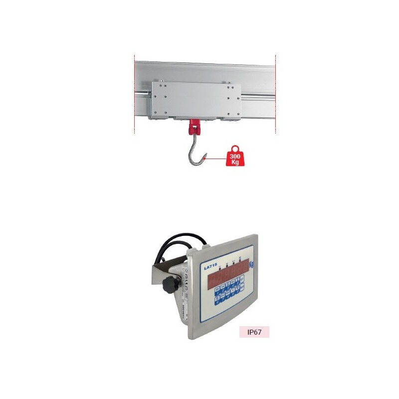 Balance aérienne intégrée au rail à viande + afficheur inox IP67 - Jusqu’à 300 kg